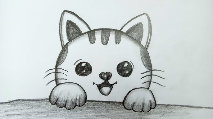 • Kawaii Cats: Begin with a round head and add two triangle-shaped ears on top. Draw large, circular eyes, a small triangle for the nose, and a simple line for the mouth. You can give your cat a cute expression by altering the eyes or adding whiskers. To finish, add little paws and a swishing tail.